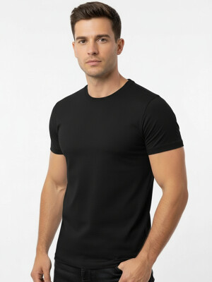 A Baci Man fekete kereknyakú pamut felső klasszikus, időtálló darab minden férfi ruhatárában. Puha, 100% pamut anyaga légáteresztő és egész nap kényelmes viseletet biztosít, míg letisztult kialakítása könnyen kombinálható bármilyen stílusú öltözettel – legyen szó hétköznapi, casual vagy sportos megjelenésről.