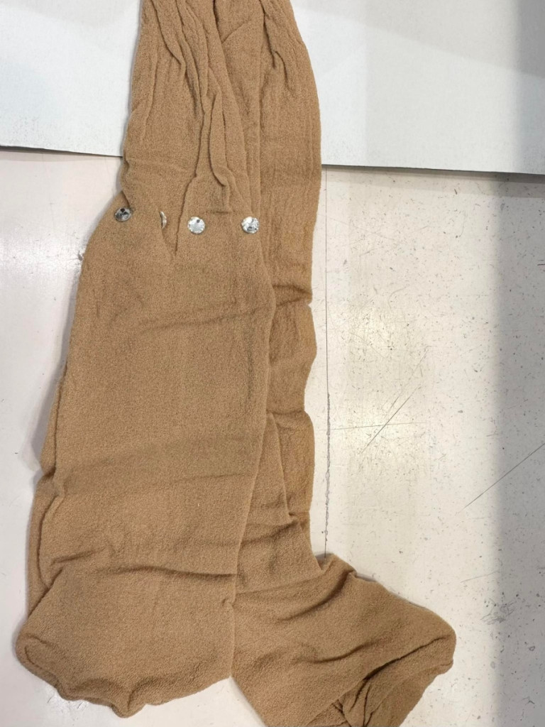 Egyik bokánál körben ,ezüst strasszkővel díszített testszínű harisnya