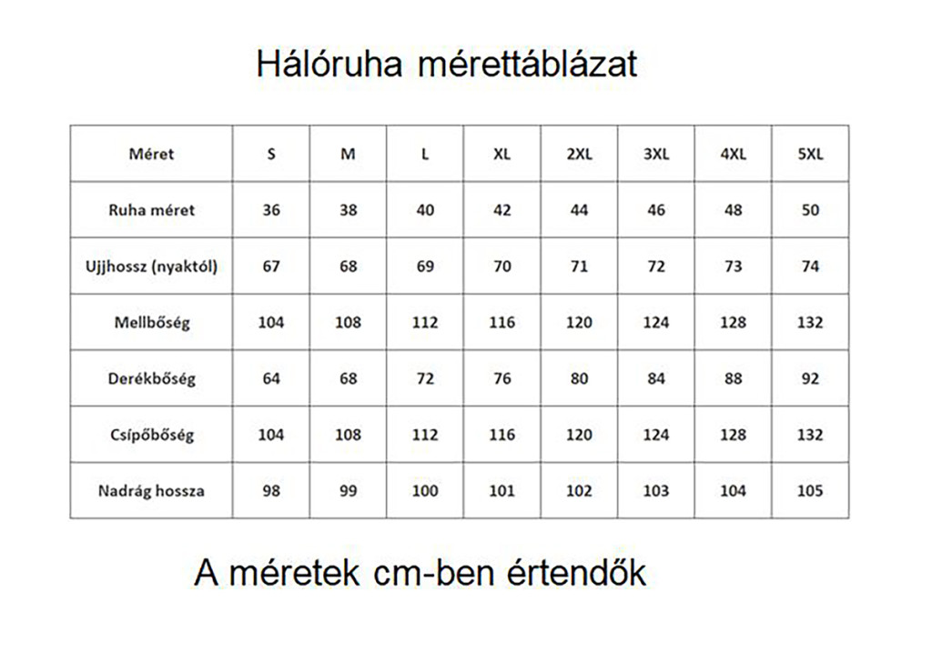 A szett egy gombos felsőrészből és egy hosszú nadrágból áll, melyek harmonikus összhatást alkotnak. A könnyed, selymes tapintású szatén anyag nem feszül, kellemes viseletet biztosít, a laza szabás pedig maximális komfortot és szabad mozgást nyújt.