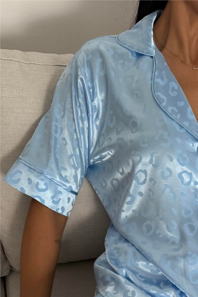 COCO kék szatén hálóruha szett kényelmes és elegáns éjszakai viselethez.