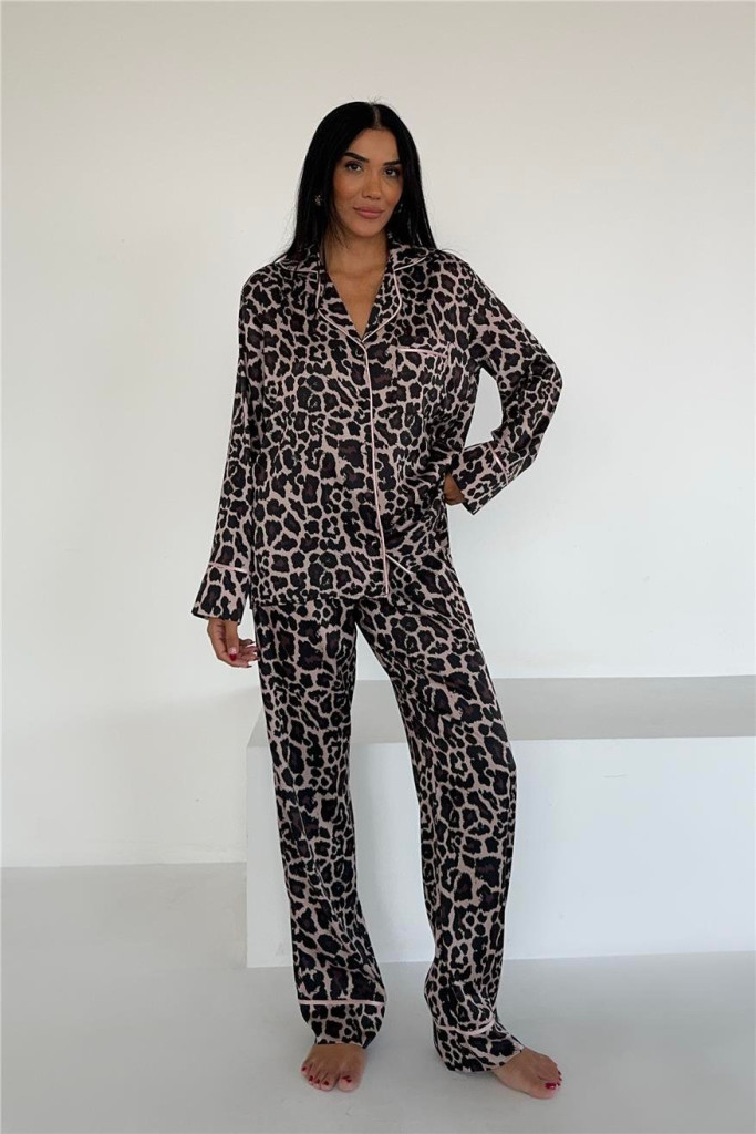COCO leo mintás szatén hálóruha szett kényelmes és elegáns éjszakai viselethez.
