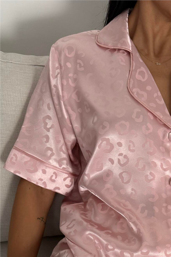 COCO Rózsaszín Leopárd Mintás Szatén Hálóruha Szett
