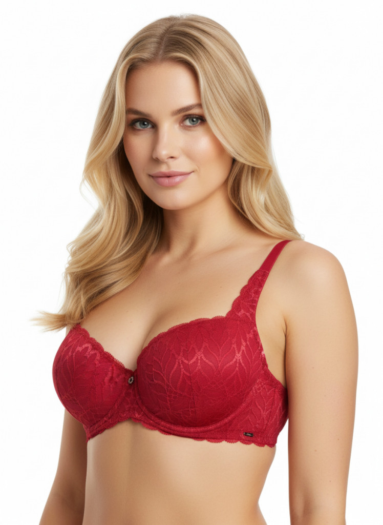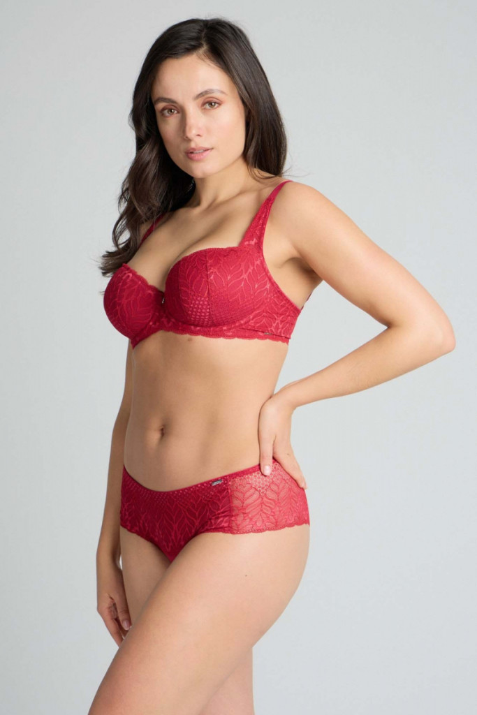 A balconette szabású melltartó mély és kifinomult dekoltázst formál. Luxus hatású, gazdag mintázatú csipkéje és a vörös szín mély árnyalata azonnal magára vonja a figyelmet. Megbízható tartást biztosít, és minden mozdulatodhoz alkalmazkodik. Tökéletes választás a mindennapokra.