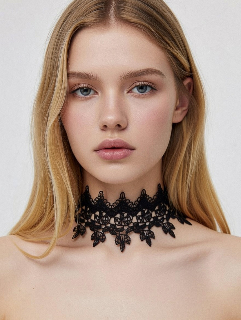 Elegáns fekete csipkéből készült choker nyaklánc, amely finom és nőies megjelenést kölcsönöz. A könnyed, légies csipke gyengéden simul a nyakhoz, így kényelmes viseletet biztosít. Tökéletes választás alkalmi öltözékhez, estélyekhez, vagy ha szeretnél egy kifinomult, figyelemfelkeltő kiegészítőt a mindennapokra.