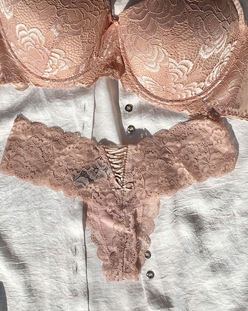 Gyönyörű csipkéből készült tanga, hátulján nőies fűzővel.