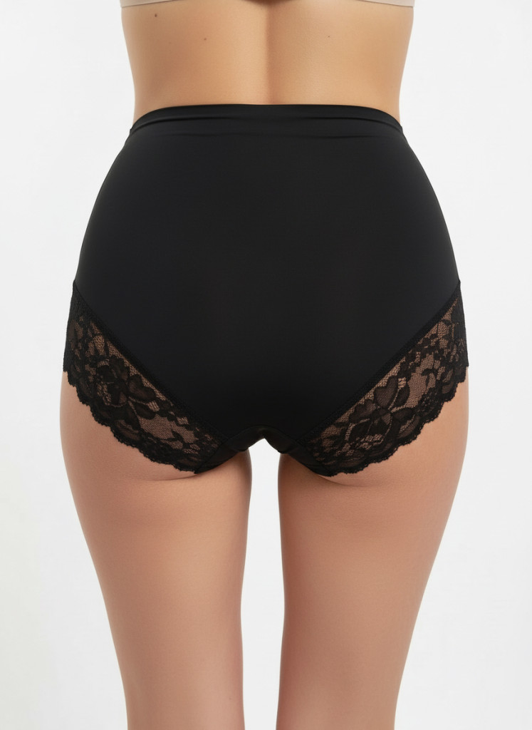 Ez a magasított FIT bugyi tökéletes választás, ha egyszerre vágysz kényelmes viseletre és nőies megjelenésre. A fekete árnyalat finom és elegáns, míg a csipkés részletek romantikus hangsúlyt adnak a fazonnak. Rugalmas, puha anyaga szépen követi az alak vonalát, a magasított szabás pedig biztos tartást nyújt a mindennapok során.