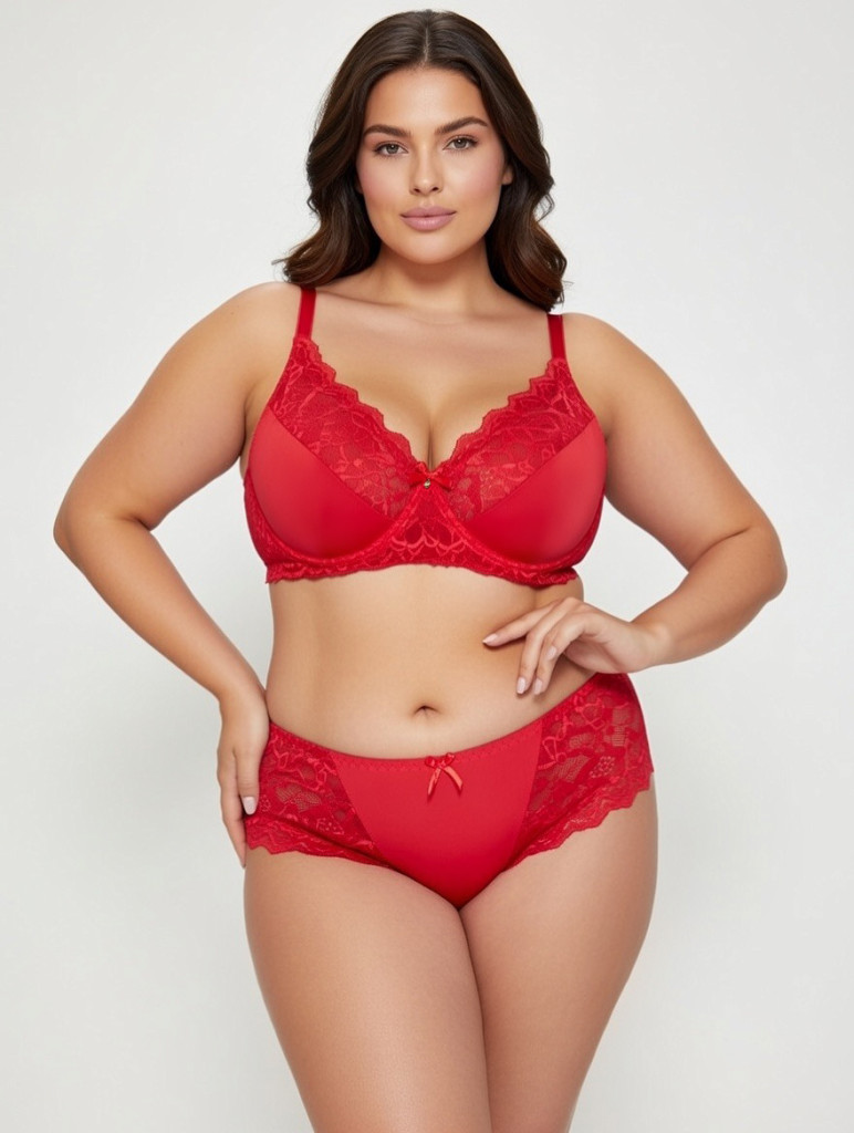 A Donna piros csipkés melltartó szett magabiztos, nőies megjelenést kínál elegáns csipkerészletekkel. A gondosan kialakított szabás kényelmes viseletet és megbízható tartást biztosít, miközben kiemeli az alakot. Rugalmas anyaga kényelmesen simul a testre, a melltartó jól tart, míg a hozzá illő bugyi harmonikusan követi az alak vonalait. Élénk piros színe és finom csipkedíszítése elegáns és figyelemfelkeltő hatást kelt.Tökéletes választás nagyobb méretek esetén is, ha a stílus és a kényelem egyaránt fontos.