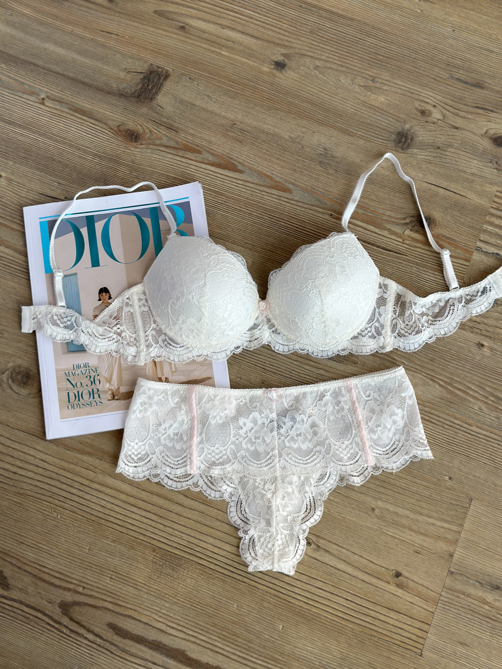 Fantasy csipkés hipster tanga. Gyönyörű ivory színe van, halványrózsaszín csíkkal es masnivan díszített.