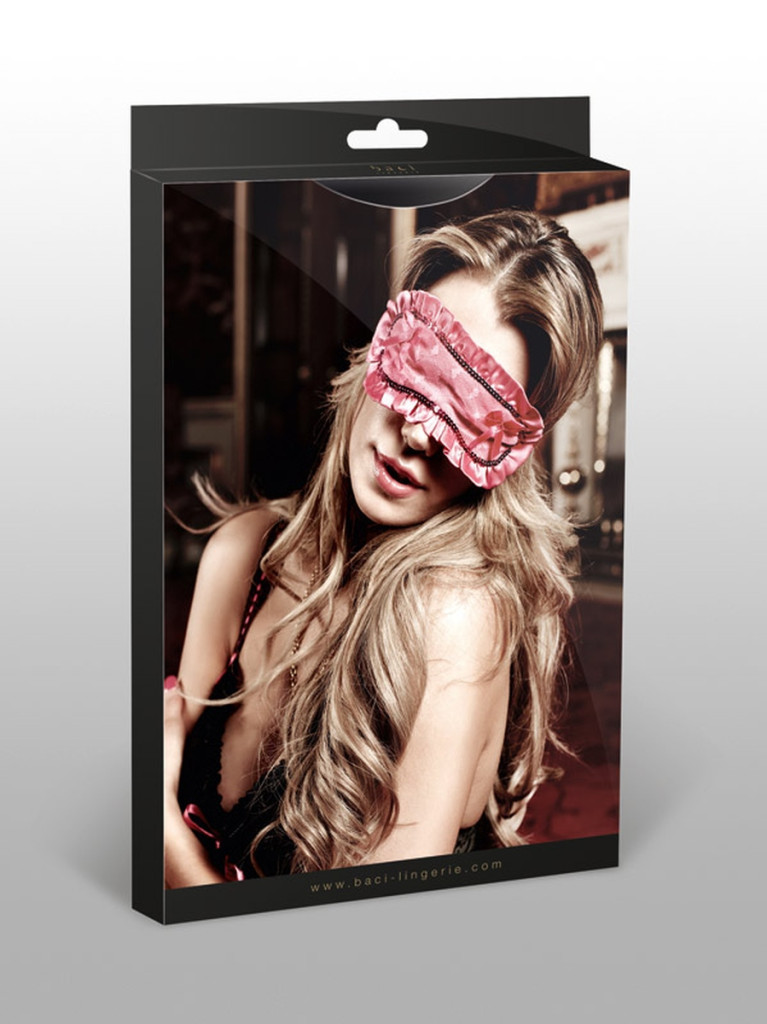Finom fodrokkal díszített rózsaszín szemmaszk elegáns és kényelmes kialakítással.