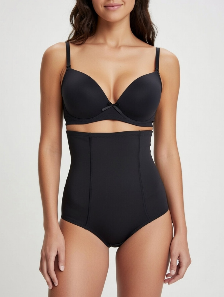 Fitting fekete magasított alakformáló bugyi kényelmes fazonnal, elegáns és praktikus viseletre.