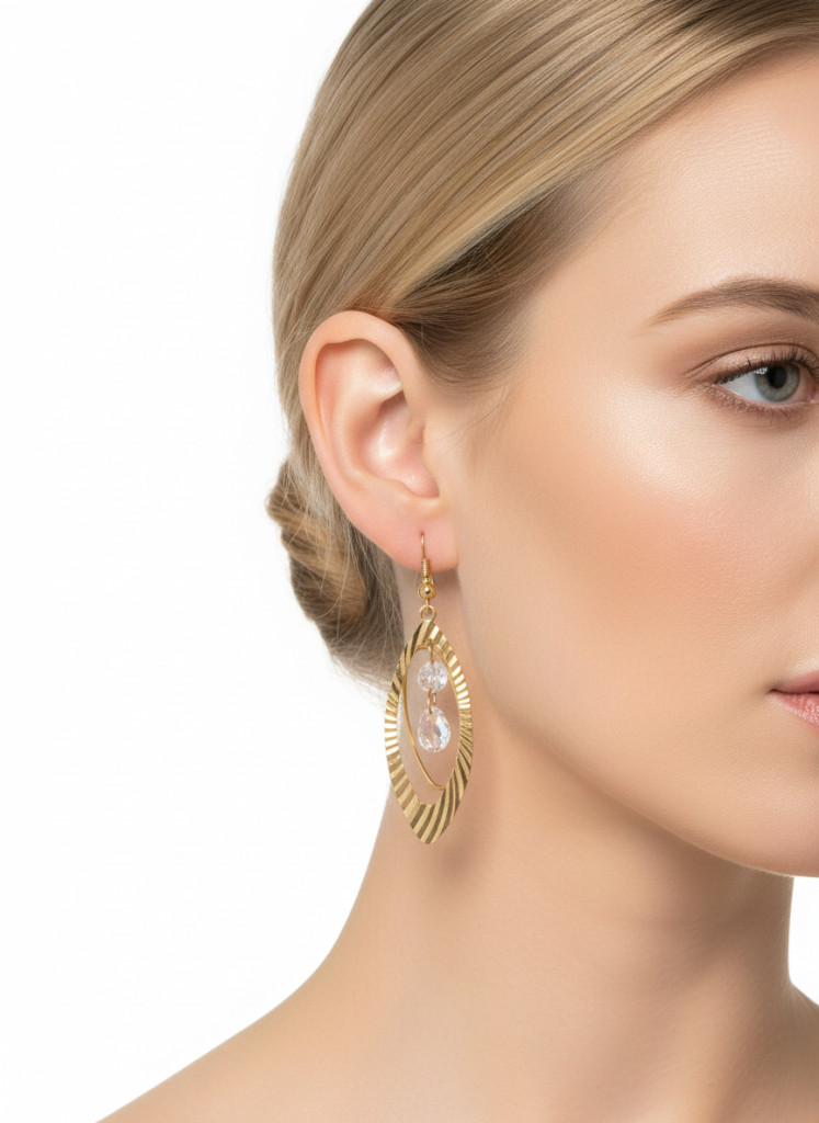 Ragyogj arany fényben ezzel a köves fülbevalóval! Az arany szín meleg eleganciát sugároz, míg a csillogó kövek különleges megjelenést kölcsönöznek. Tökéletes választás ünnepi alkalmakra vagy stílusos hétköznapokra.