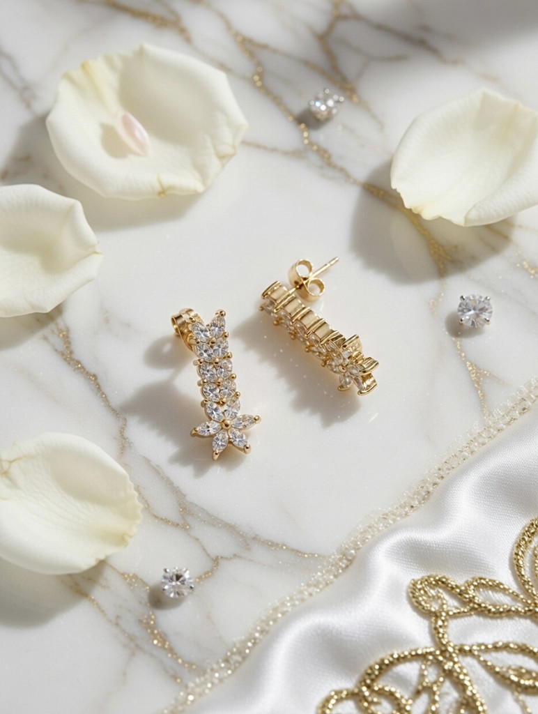 Rose gold virágos köves fülbevaló – elegáns és nőies választás a mindennapokra és alkalmakra egyaránt.