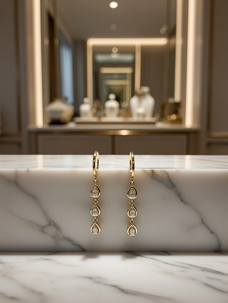 Tedd elegánssá a megjelenésed ezzel az arany színű 3 köves lógós fülbevalóval! A három ragyogó kő finom mozgással követi minden lépésedet, így garantáltan felhívja a figyelmet. Minimalista, mégis feltűnő kialakítása bármilyen alkalomra tökéletes – mindennapokra vagy ünnepi eseményekre egyaránt.