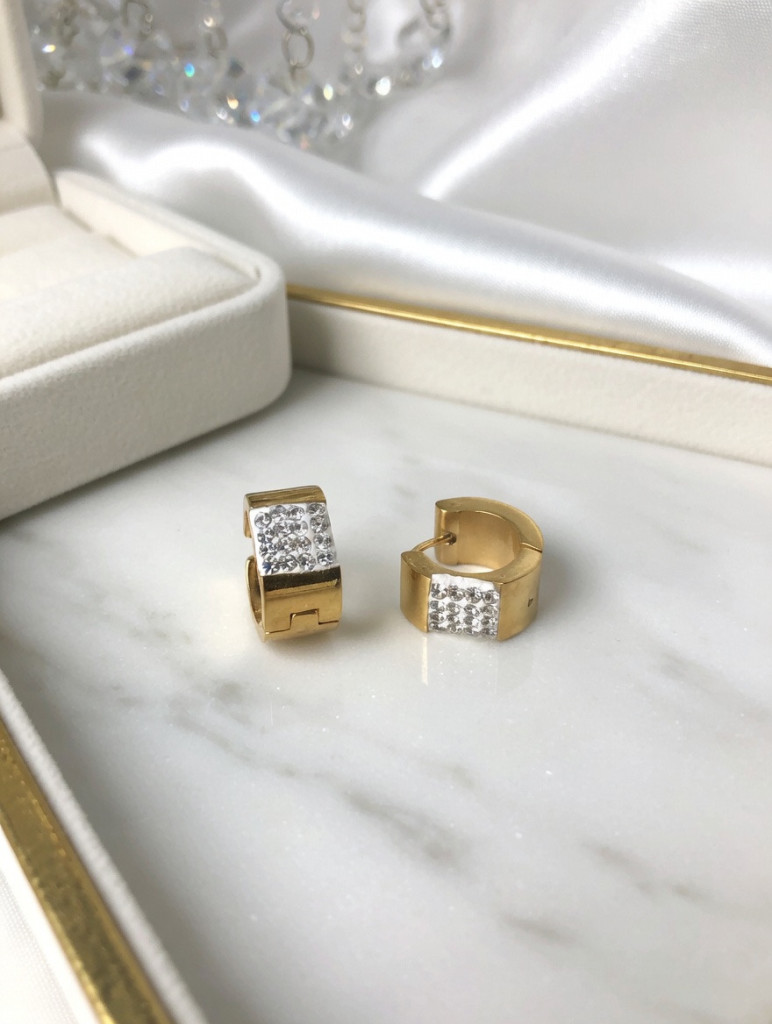 Varázsolj luxust megjelenésedbe ezzel az exkluzív, arany színű nemesacél fülbevalóval. Elegáns, kifinomult formatervezése minden alkalomhoz tökéletes, miközben időtálló anyaga hosszú távon megőrzi ragyogását. Egy apró, de látványos kiegészítő, ami stílusod emeli új szintre.