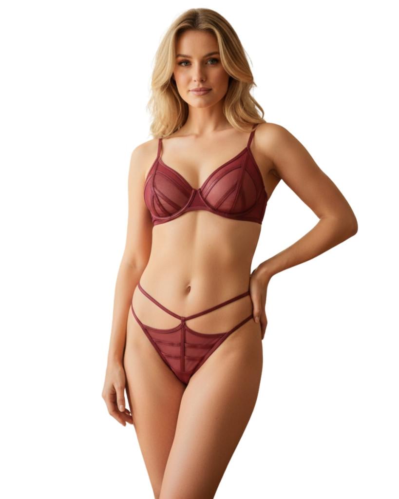 HELENA tüll betétes melltartó szett – Bordó elegancia csipetnyi titokzatossággal