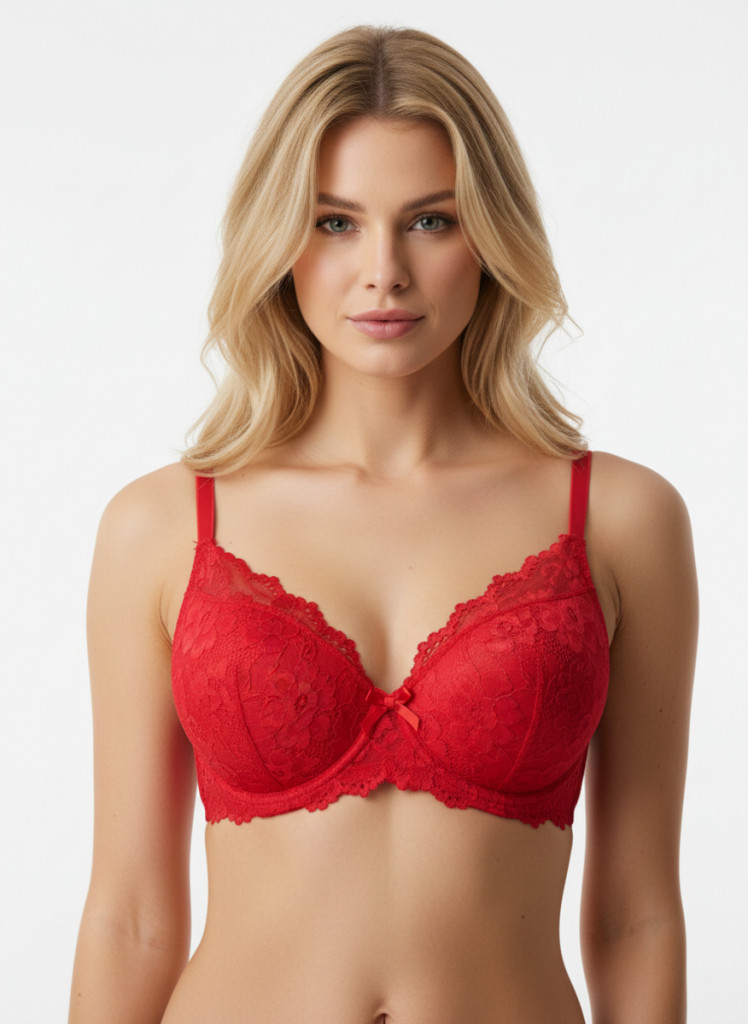 Head Over piros csipkés melltartó kényelmes és nőies mindennapi viselethez.