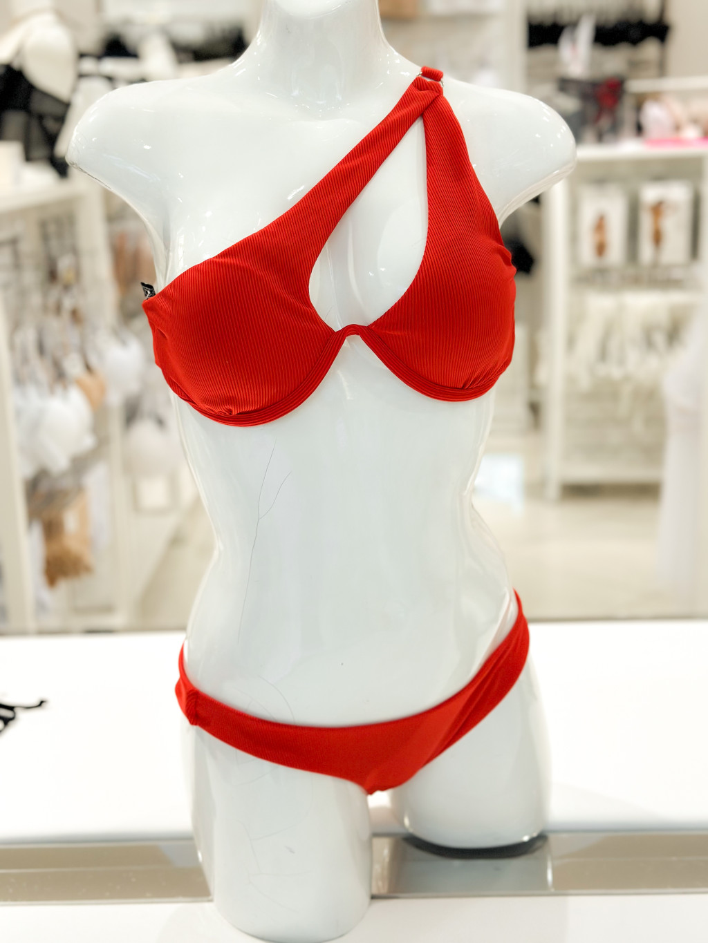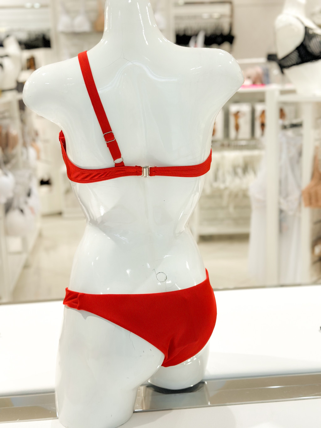 Isabel piros bikini szett elegáns fazonnal, harmonikus nyári megjelenéshez.