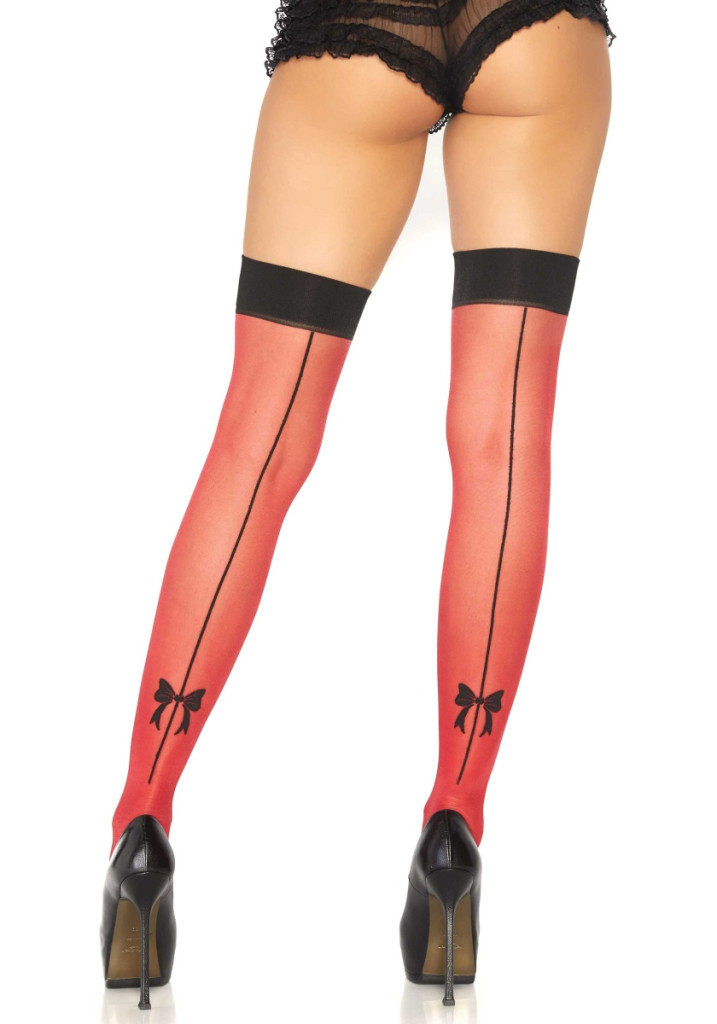 LA1083-RED/BLK-Piros harisnya fekete csíkkal és szegéllyel elegáns és kényelmes kialakítással.