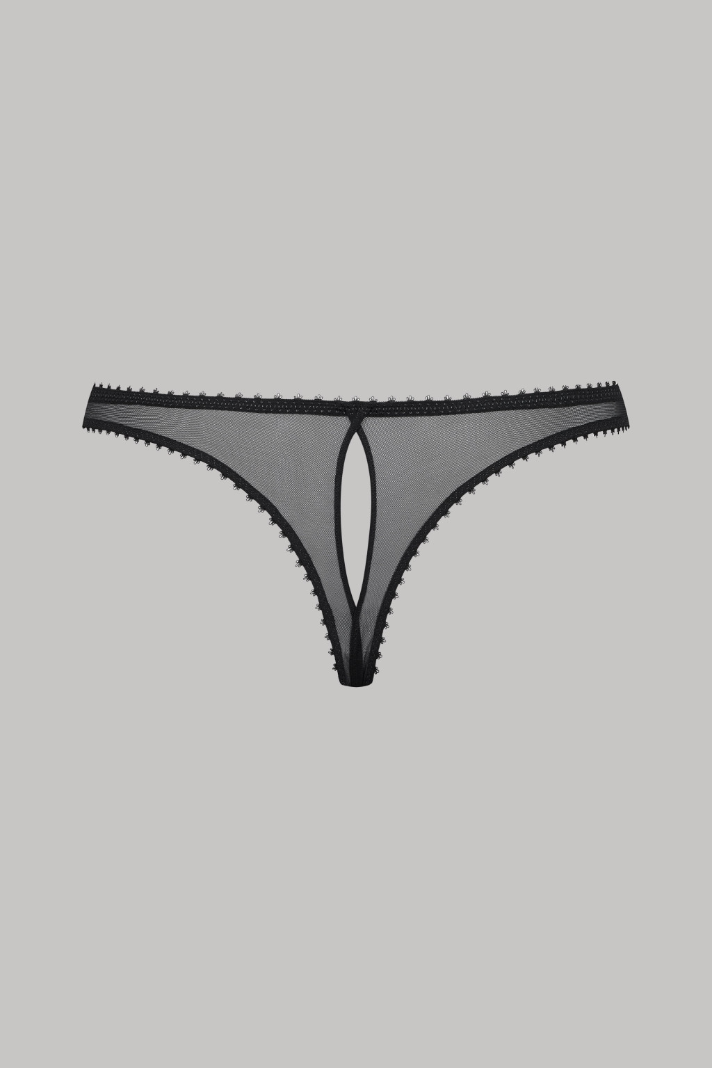 Merev csipkével és átlátszó tüllel kombinált nyitó zsinór, pikot gumival szegélyezve. Grafikus, strukturált dizájn két crossover résszel elölről hátrafelé. Hétköznap is viselhető, mivel össze lehet húzni alul.