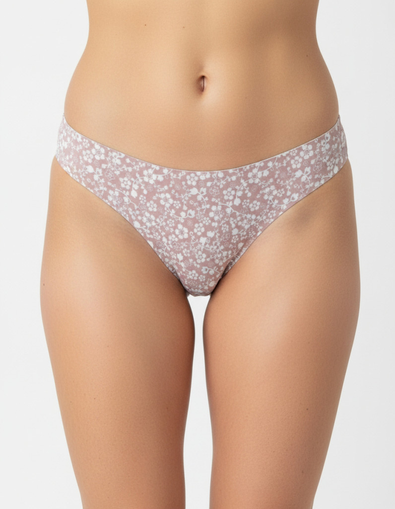 Mályva mintás lézervágott tanga elegáns és kényelmes női fehérnemű mindennapi viselethez.