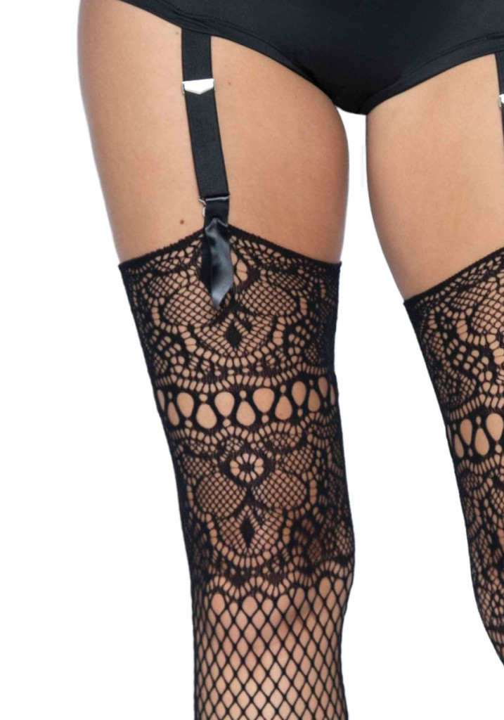 Elegáns necc harisnya csipkemintás felsőrésszel és finom díszcsíkkal. Kényelmes viselet, amely tökéletesen illeszkedik és stílusos megjelenést biztosít.