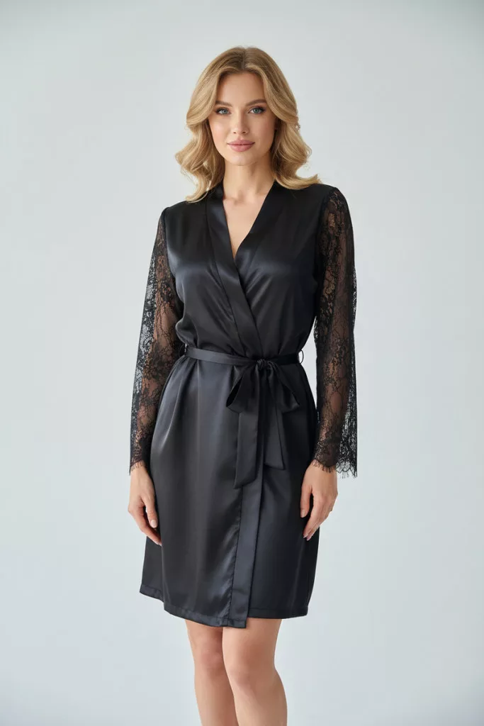 Olivia szatén kimonó csipke ujjal elegáns és kényelmes kialakítással.