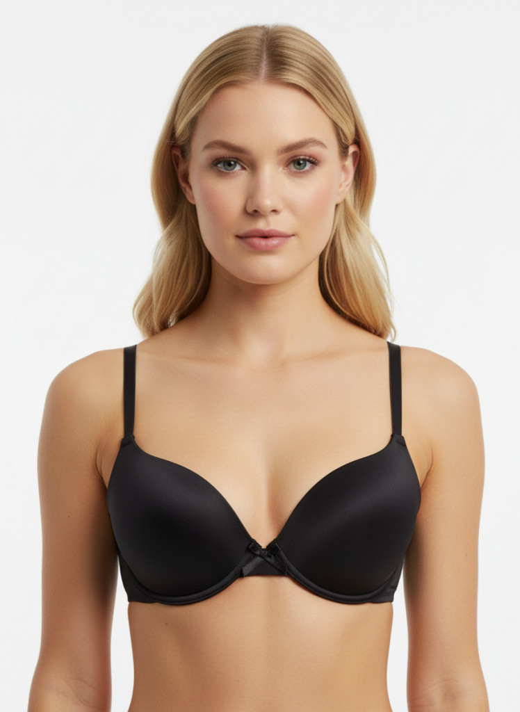 Alapdarab, ami minden nő gardróbjában helyet érdemel: sima fekete push-up melltartó, amely természetes módon emeli és formálja a dekoltázst. Egyszerű, elegáns kialakítása bármilyen ruhához tökéletesen illik, miközben a kényelmes szivacsos kosarak egész napos tartást biztosítanak. Állítható vállpántjai lehetővé teszik a személyre szabott illeszkedést.