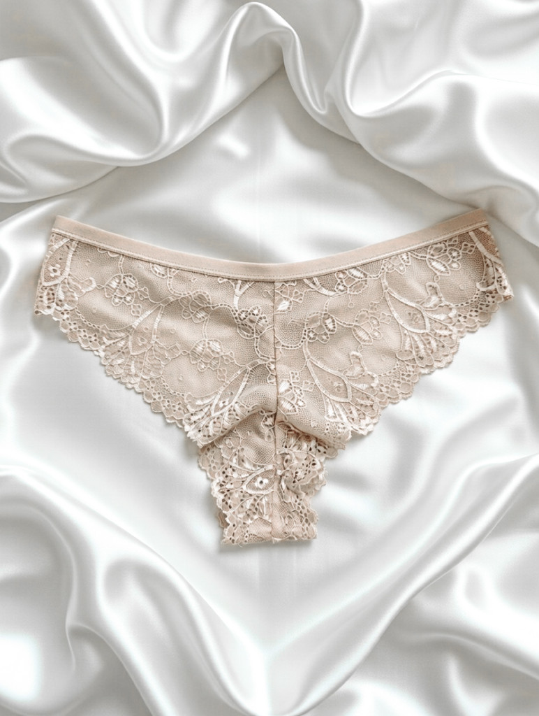 Red carpet világos púder csipkés brazil tanga elegáns és kényelmes női fehérnemű mindennapi viselethez.