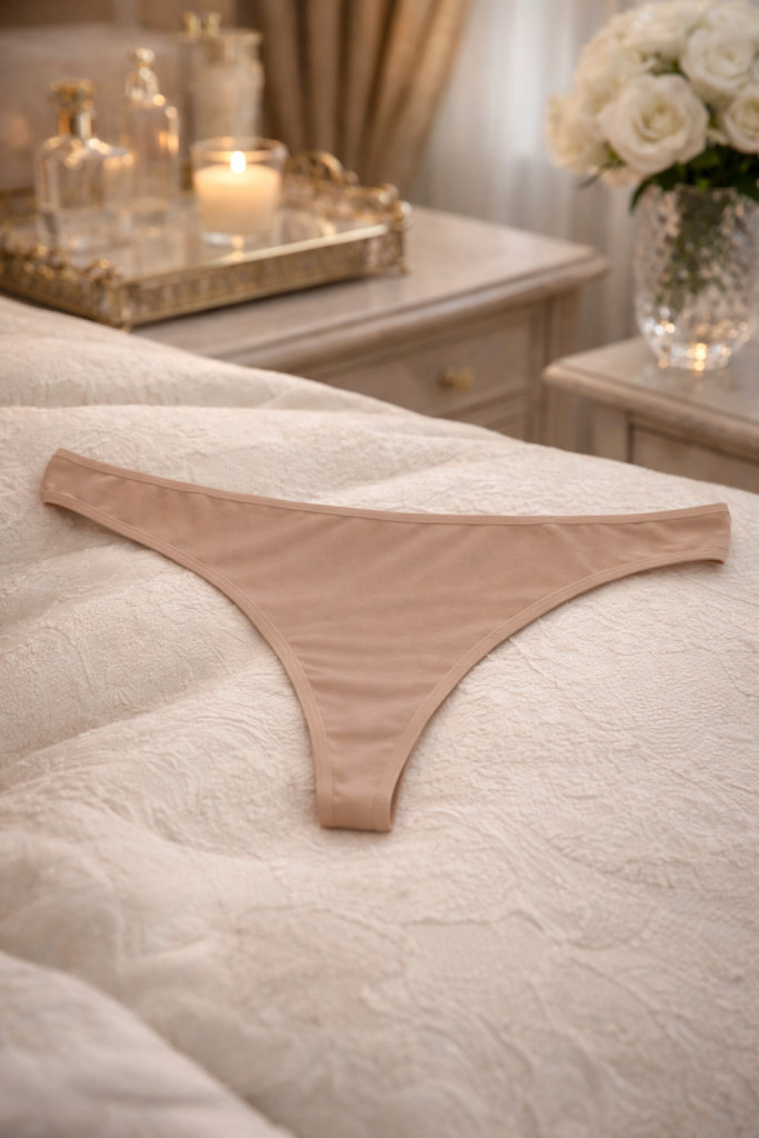 Shimer testszínű tanga elegáns és kényelmes női fehérnemű mindennapi viselethez.
