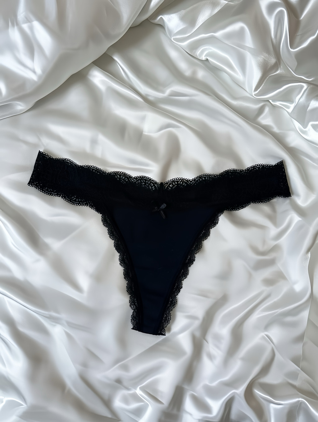 Time fekete pamut csipkés tanga elegáns és kényelmes női fehérnemű mindennapi viselethez.