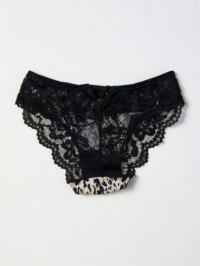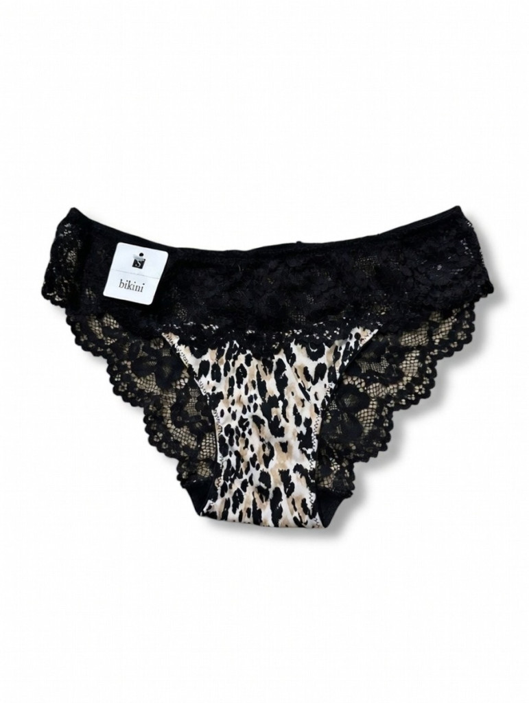 A leopárd mintás csipkés bikini bugyi a vadonatúj dizájn és a kényelmes viselet tökéletes kombinációja. A csipke finom részletei és a micro anyag biztosítják a rugalmas illeszkedést, így a bugyi egész napos kényelmet nyújt. A vadonatúj leopárd minta szexi és elegáns megjelenést kölcsönöz, miközben a kényelmes szabás tökéletes illeszkedést biztosít minden testalkaton. A csípőrésznél és hátsó résznél található csipke további nőiességet ad a stílusos megjelenéshez.