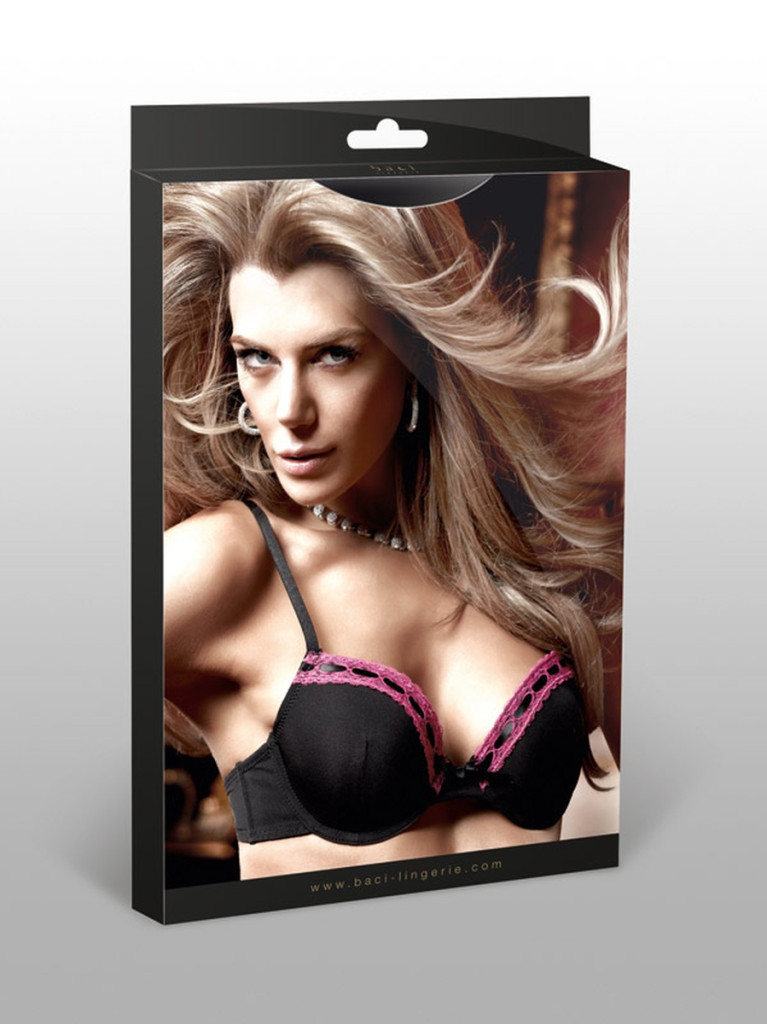 Előformázott fekete melltartó bíbor-színű csipke-bordűrökkel és párnázott kosarakkal