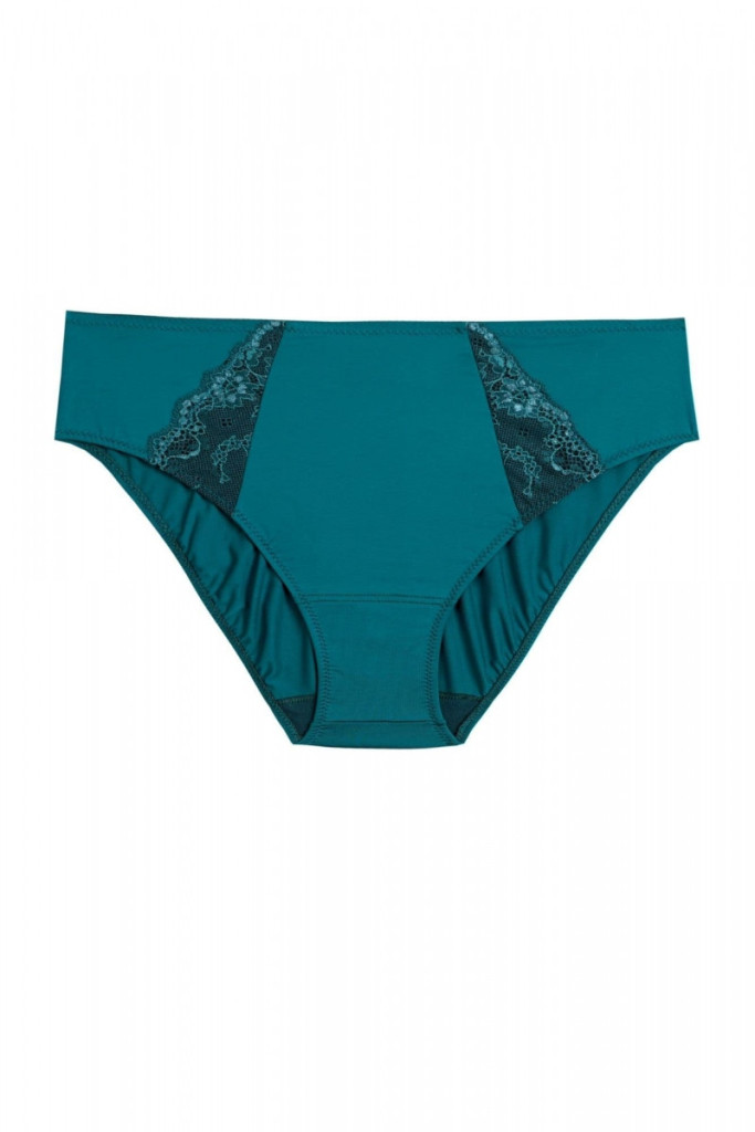 Smaragdzöld csipkés klasszikus bugyi kényelmes fazonnal, elegáns és praktikus viseletre.