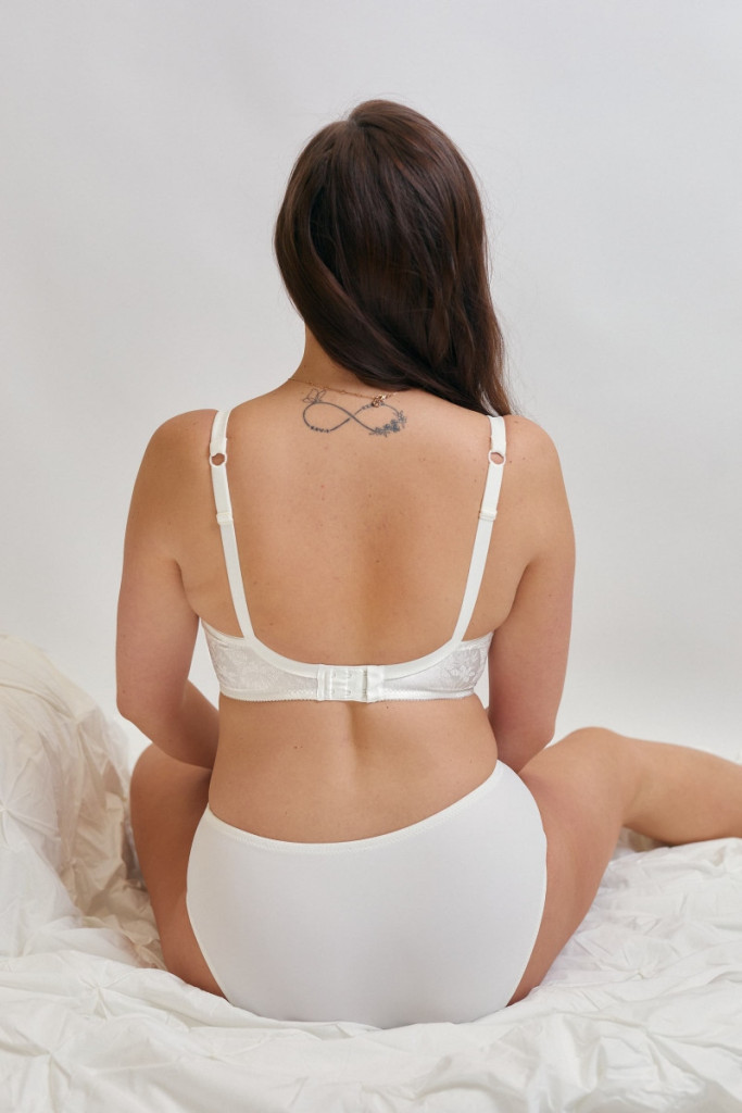 Exkluzív ivory nyomott csipkés klasszikus bugyi kényelmes fazonnal, elegáns és praktikus viseletre.