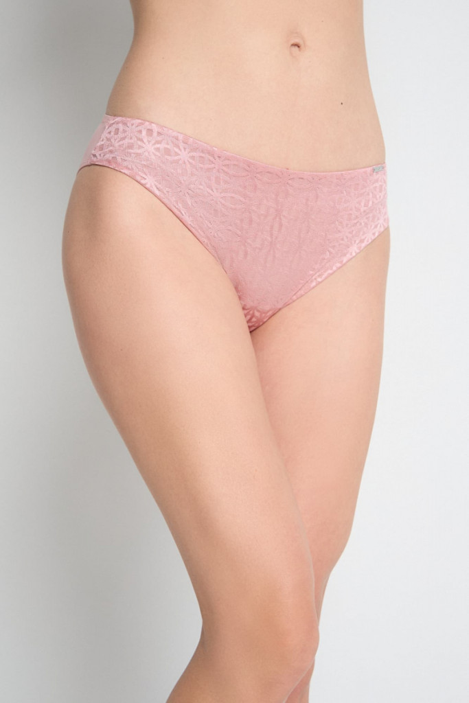 A klasszikus szabású női bugyi teljesen fedi a popsit, és stabilan a helyén marad. Az elülső részen rejtett gumírozás gondoskodik a sima megjelenésről és a még nagyobb kényelemről. A rózsaszín Sofi bugyit finom geometrikus minta díszíti. Válassza a kedvelt fazont, amely tökéletesen illeszkedik és kiemeli a vonalait.