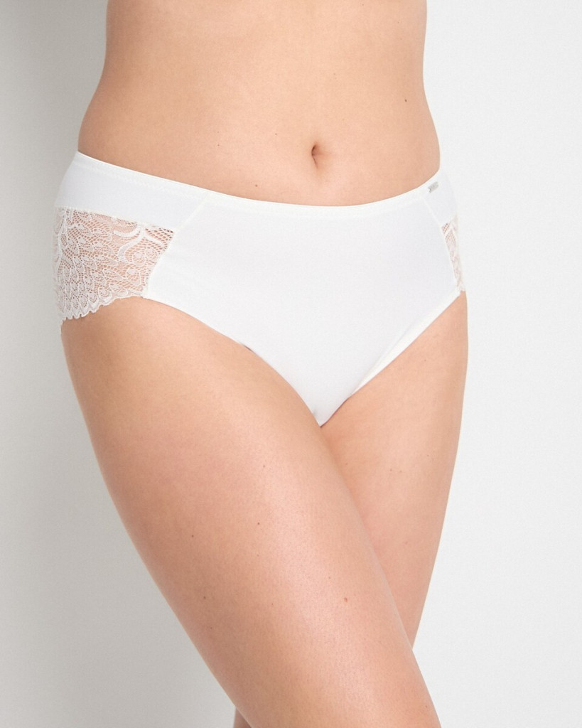 A gyöngyházszínű klasszikus bugyi tökéletesen alkalmazkodik a tested vonalaihoz, biztosítja az esztétikus megjelenést és a maximális kényelmet. A hátsó rész szárát finom csipke díszíti, amely nem rajzolódik ki a ruházat alatt. A bugyi pamut betéttel készült, nem szorít és nem vág be sehol. A bugyihoz választhatsz gyöngyházszínű melltartót is Top-Fit vagy Contour-Fit fazonban, így teljes szetté alakíthatod az öltözékedet.