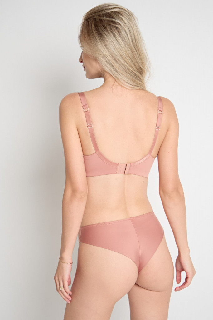 A Vivi brazil bugyi kiemeli a popsi szépségét, miközben finoman eltakarja az apróbb hibákat. Gondoskodik róla, hogy nőiesnek és magabiztosnak érezze magát benne. A rézszínű bugyi puha, sima anyagból készült, amely úgy simul a testhez, akár egy második bőr. Nem rajzolódik ki a szűk ruhák alatt. Engedje meg magának a luxus érintését
