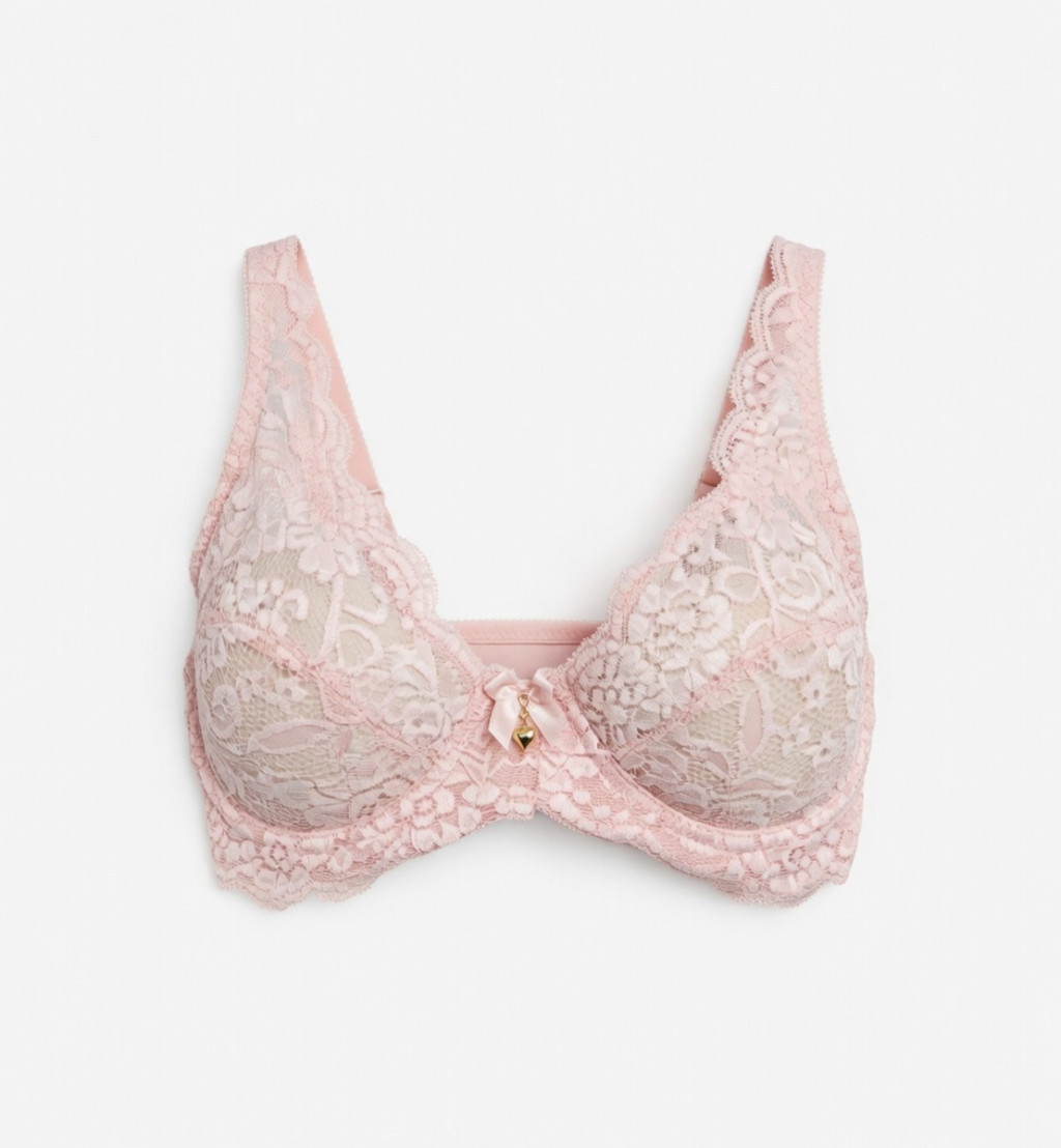 Előformázott világos-rózsaszín csipke-melltartó függővel kényelmes és nőies mindennapi viselethez.