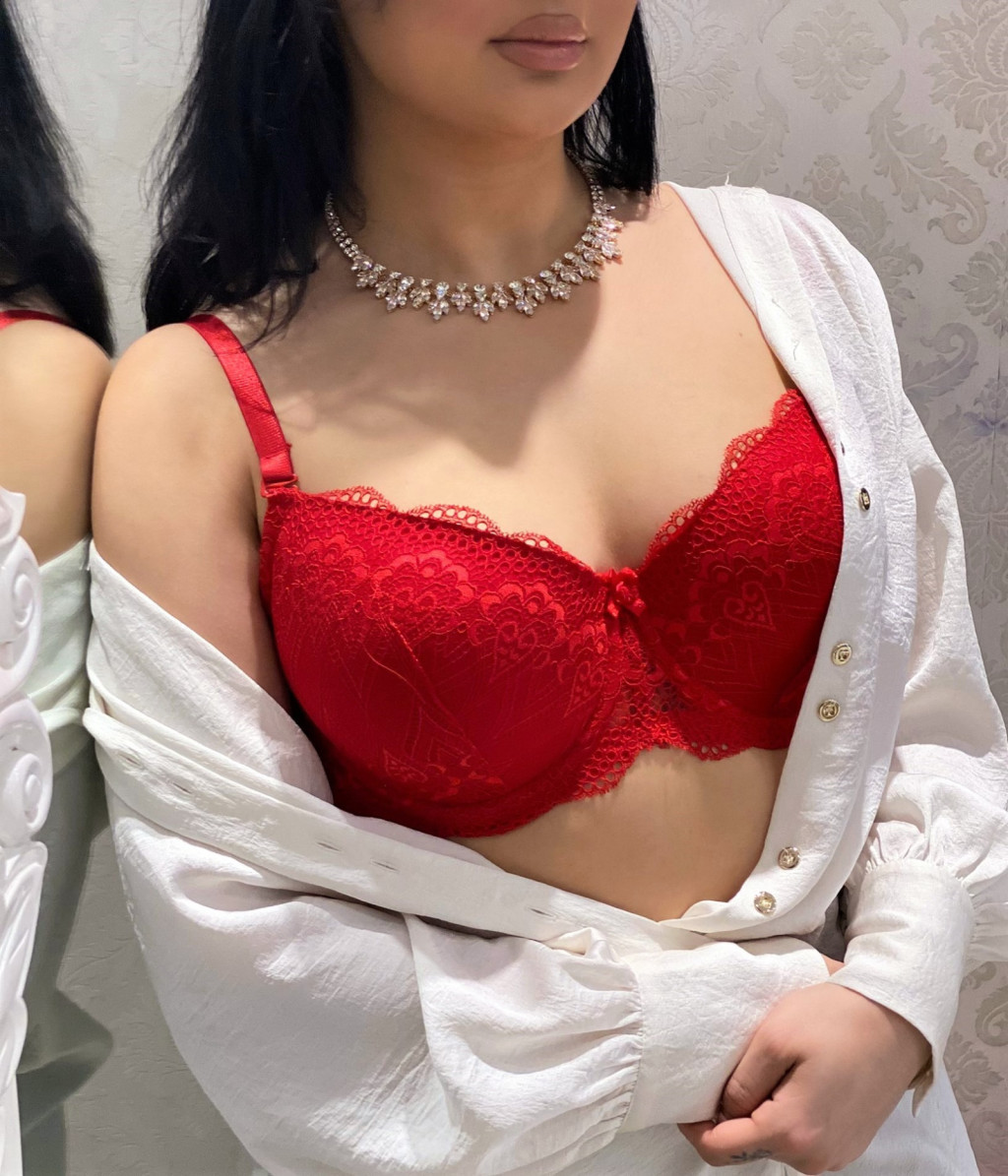 Ez a csodás piros melltartó vékony szivacsbéléssel készült, amely kényelmes tartást biztosít, miközben gyönyörű formát ad a dekoltázsnak. A finom csipke elegánsan követi a test vonalát, kiemelve a nőies idomokat, a plus size fazon pedig tökéletesen illeszkedik minden alakhoz.
