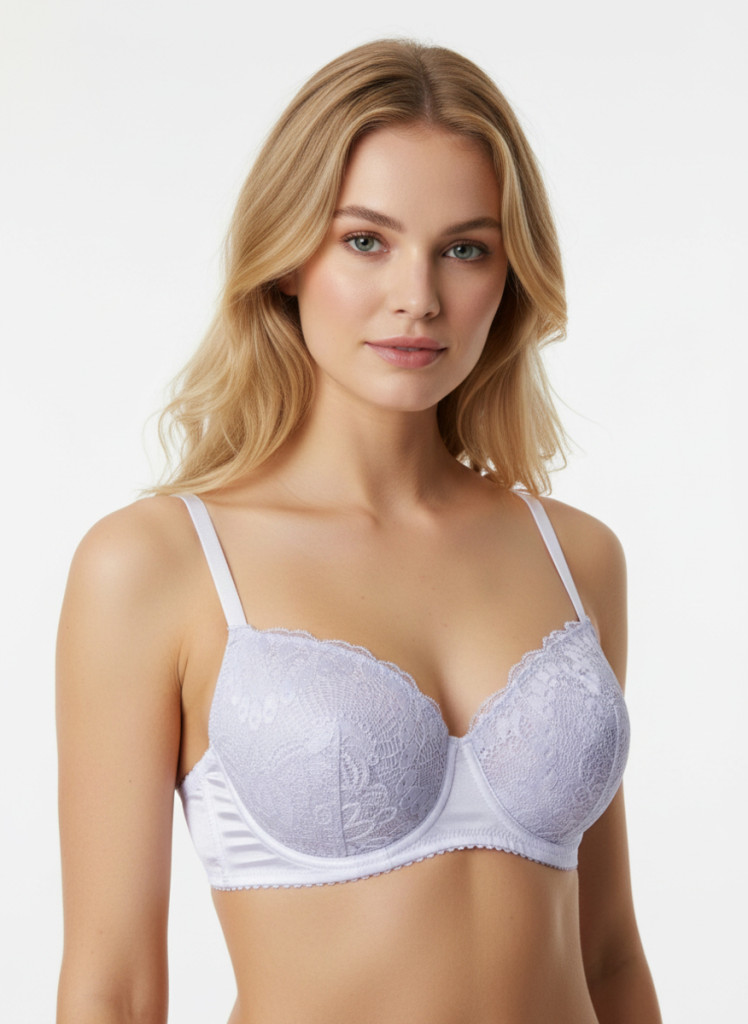 A finom lila árnyalat és az elegáns csipkedíszítés kombinációja diszkrét luxust sugall, miközben a puha, rugalmas anyag egész napos kényelmet biztosít. Az állítható pántok tökéletes illeszkedést garantálnak, akár mindennapokra, akár különleges alkalmakra viseled.