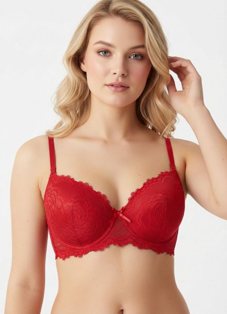 Gyönyörű tűzpiros csipkés push-up melltartó