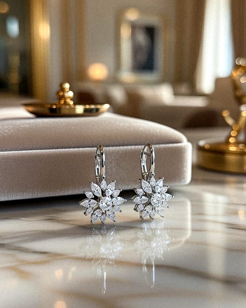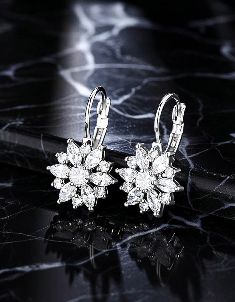 Varázsold stílusossá megjelenésed ezzel a virág formájú nemesacél fülbevalóval, melyet csillogó ezüst kövek díszítenek. Elegáns, mégis finom dizájnja tökéletes választás mindennapokra vagy különleges alkalmakra.
