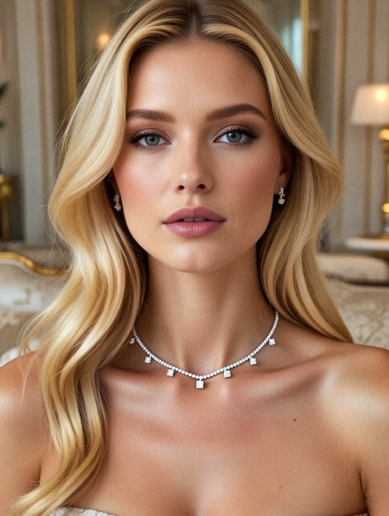 Finom ezüst nyaklánc apró, csillogó kövekkel díszítve, amely eleganciát és visszafogott fényt kölcsönöz a megjelenésnek. Letisztult kialakítása miatt könnyen kombinálható más ékszerekkel, így tökéletes választás mindennapi viselethez vagy alkalmi outfitekhez.