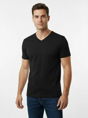 Baci Man – férfi fekete pamut felső (V-nyakú)