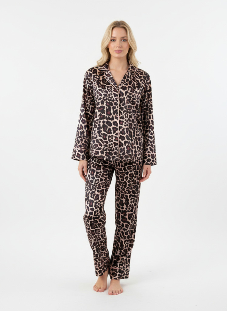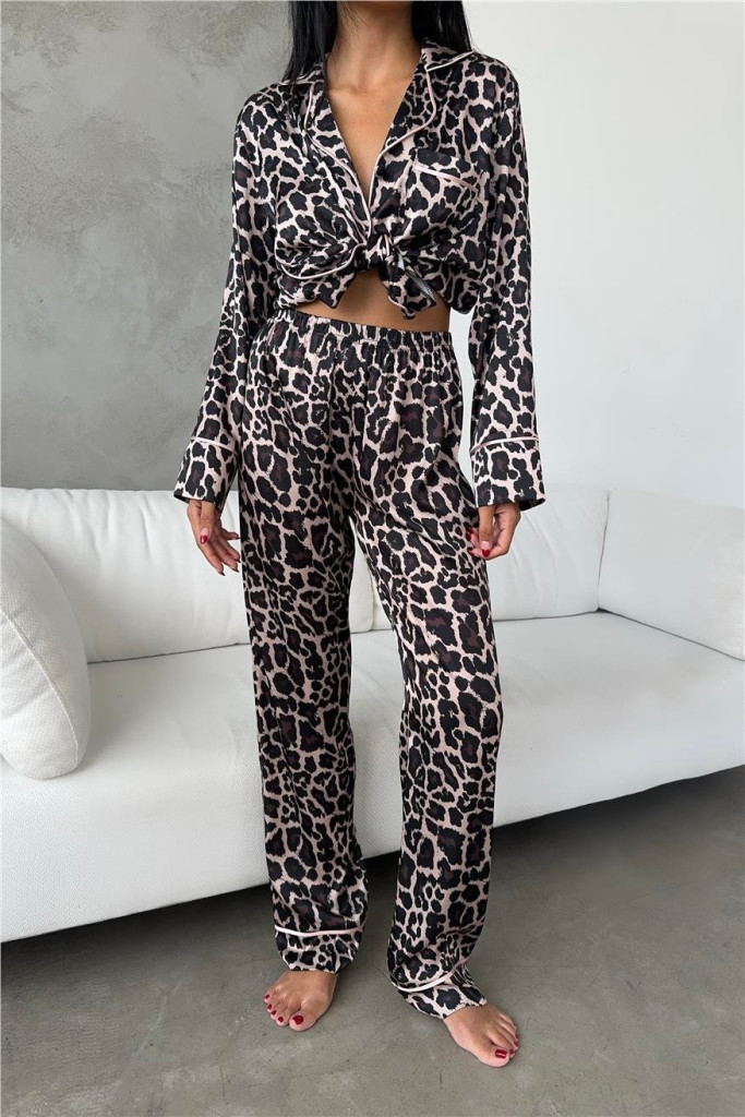 COCO leo mintás szatén hálóruha szett kényelmes és elegáns éjszakai viselethez.