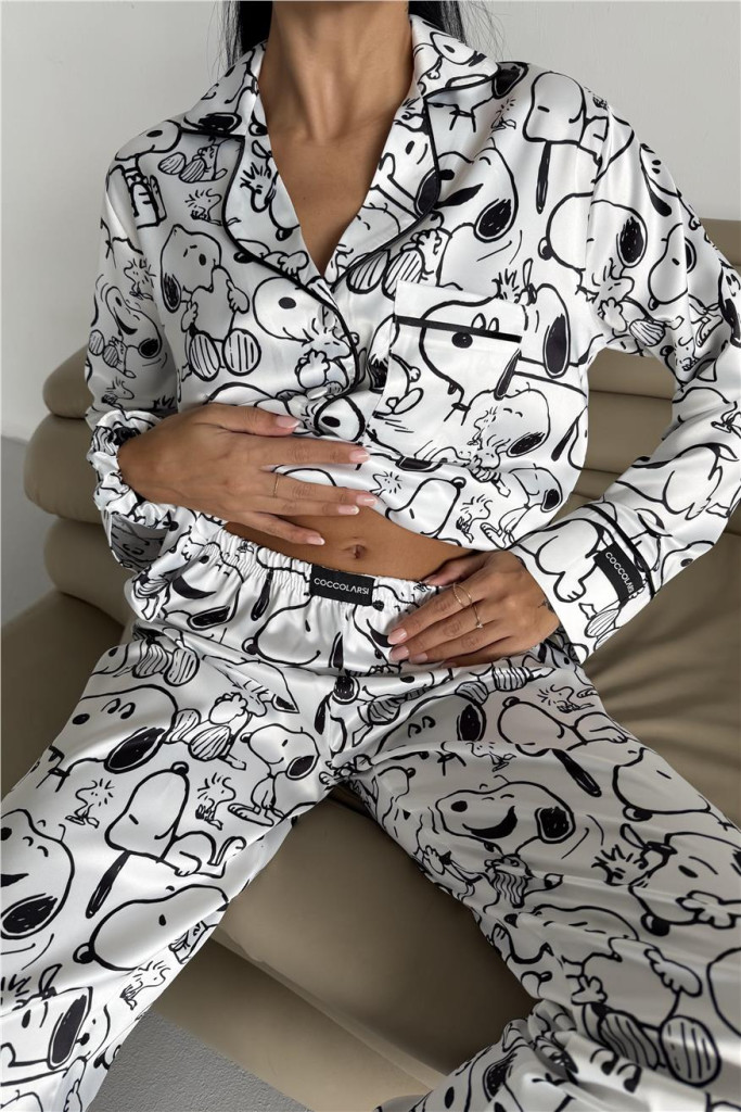 COCO snoopy mintás szatén hálóruha szett kényelmes és elegáns éjszakai viselethez.