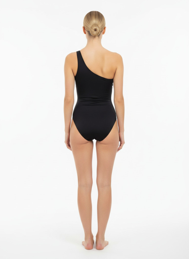 Fekete, mély dekoltázsú body – enyhén áttetsző, csillogó