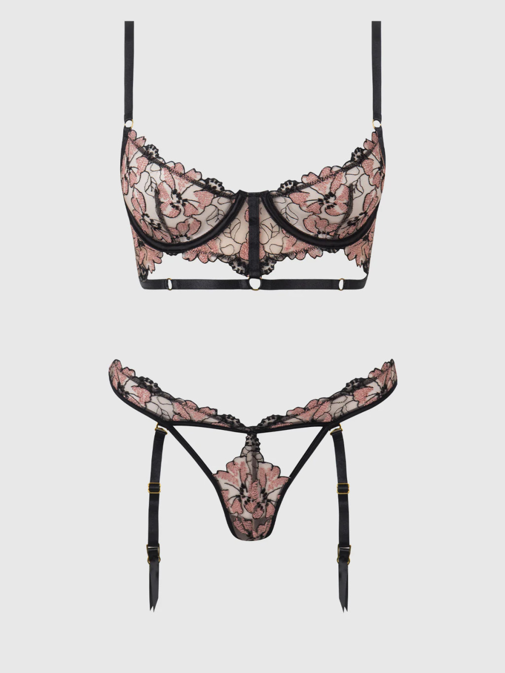 Ragyogja be az éjszakát a Nova Blacklight melltartó és harisnyatartós tanga szettünkkel, mely a modern dizájn és az érzéki luxus találkozása. A művészi hímzések és a karakteres, pántos megoldások fókuszba állítják az Ön sziluettjét, míg a sejtelmes kivágások és az áttetsző részletek gondoskodnak a felejthetetlen megjelenésről. Párosítsa egy elegáns combfixszel a magabiztos fellépésért, vagy viselje nappali öltözéke alatt titkos, csábító kiegészítőként.