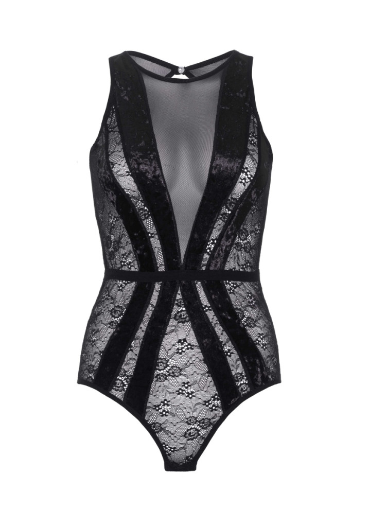 Exkluzív csipkével díszített bársony teddy elegáns és kényelmes kialakítással.