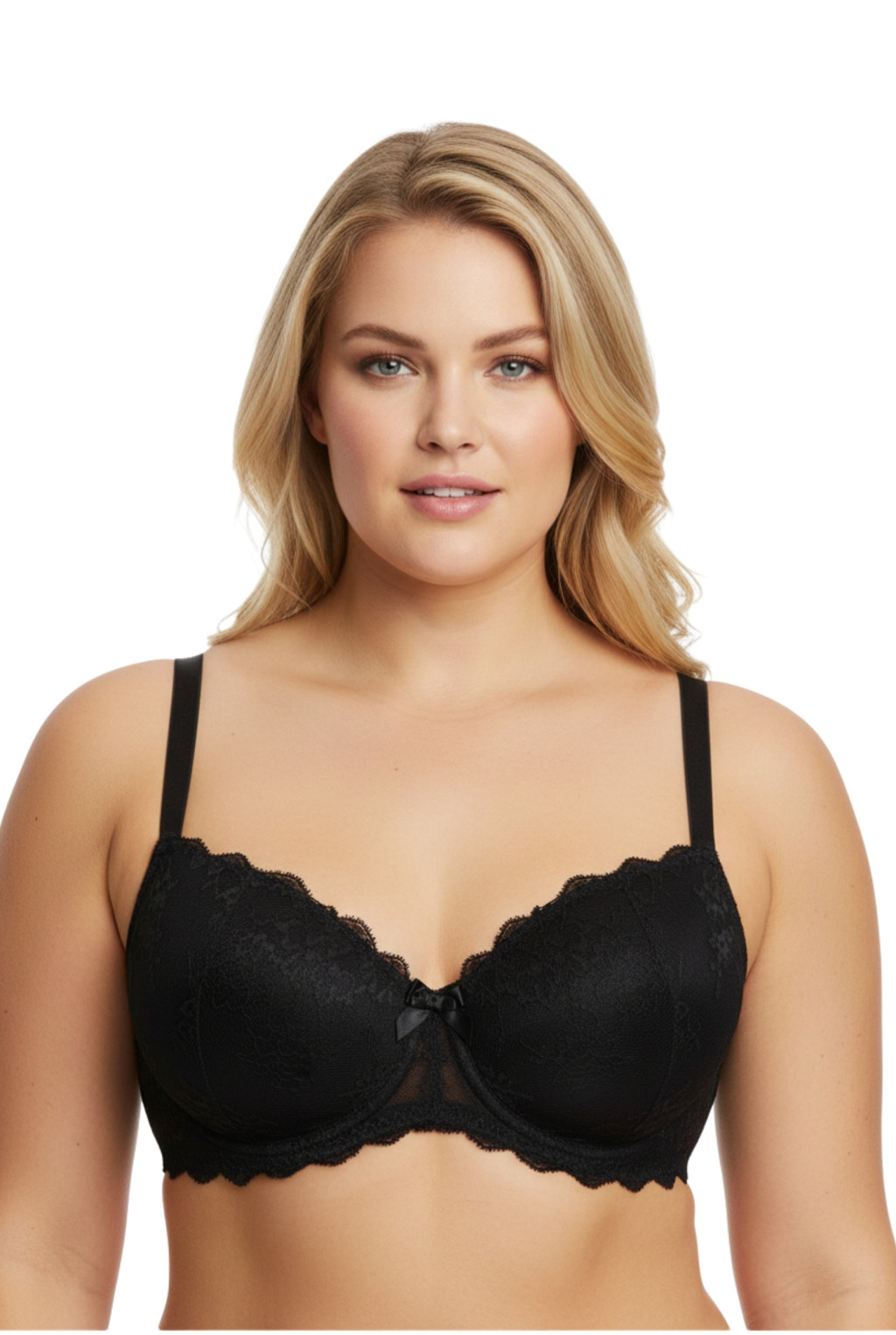 Gyönyörű csipkés melltartó flexibilis berevítővel. A belseje rugalmas pamut anyag, így alkalmazkodik a mell formájához.
